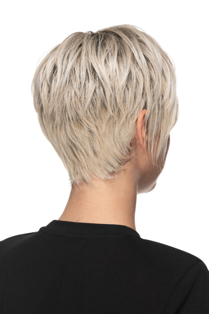 Cool Pixie is a silky straight low density asymmetric pixie shag that tapers at the nape. Special pre-teased roots provide lift without any of the bulk or fizziness.  Long enough to brush over or behind your ears and adjustable ear tabs for just the right fit.