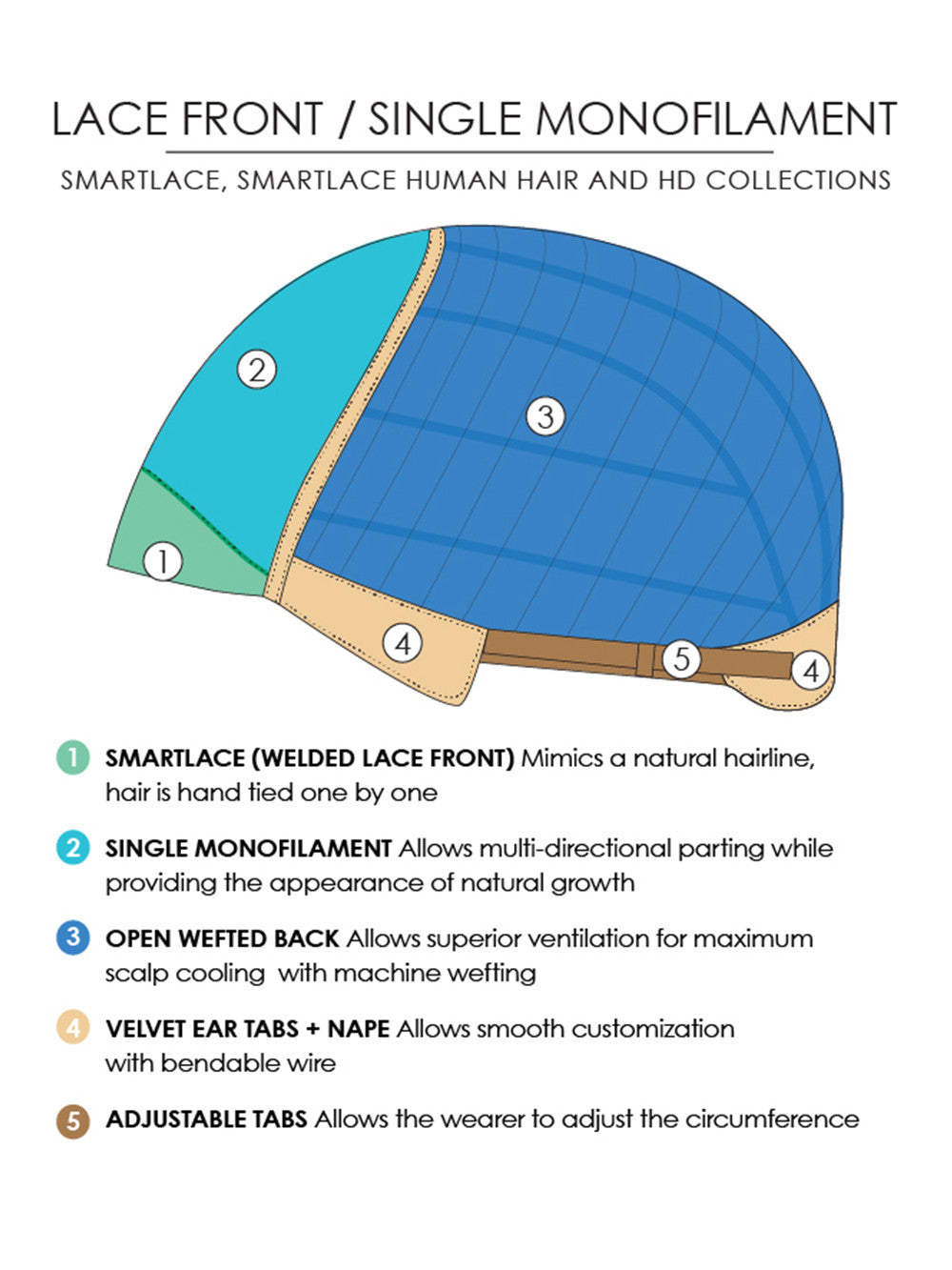 • monofilament: gives the illusion of a natural scalp and allows you to part in various directions.