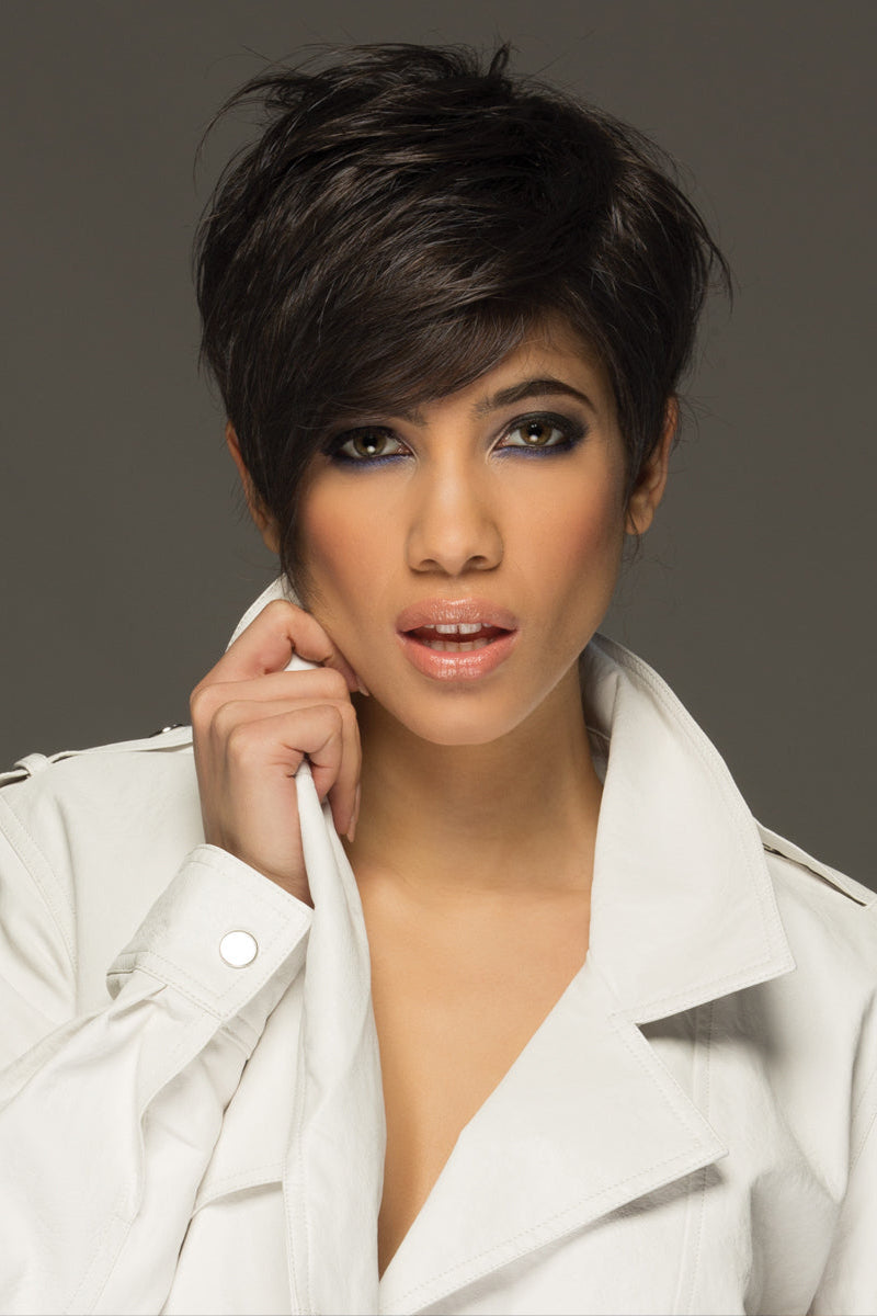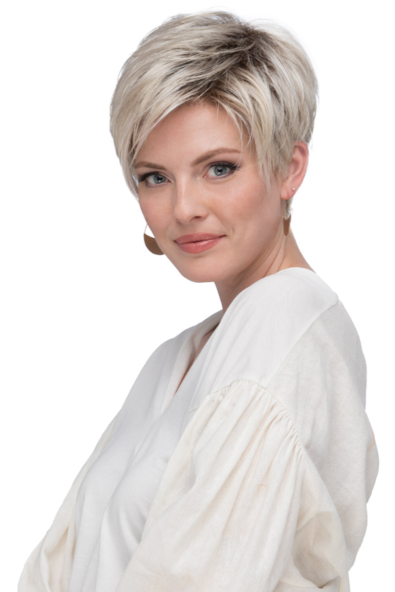 The Jett wig from Estetica is a gorgeous pixie length design with endless texture of layering and a swept over bang. Featuring a lace front design for off the face styling. The cap construction is wefted, allowing for a cool and comfortable fit. There is a soft, velvet area at the nape when the velcro tabs are attached. If you want to tighten the wig or make it looser, then simply adjust these to fit your head