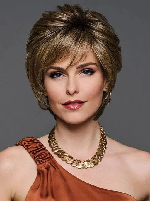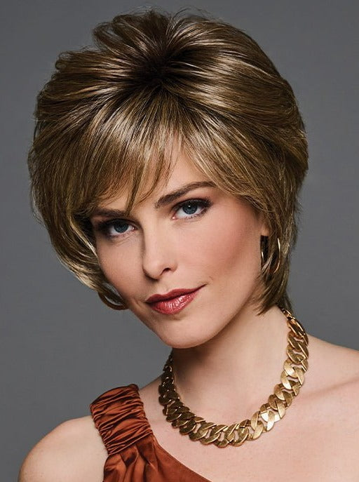 Experience the light and airy feel of So Uplifting by Gabor, with its short, cropped hairstyle featuring a slightly tapered back and extended nape. The shattered layers have razor cut edges for a voluminous look, while the heat friendly synthetic material allows for a smooth and feathery texture. Complete with an extended lace front and monofilament part, this edgy short wig offers a realistic hairline and natural appearance. Don't just settle for any style, elevate your look with So Uplifting.
