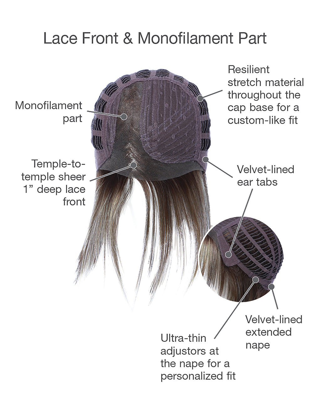 • Lace Front - Virtually invisible sheer lace front for a natural looking hairline and amazing off-the-face styling versatility.