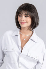 Change by Ellen Wille part of the Perucci Collection is a classic sleek, page boy bob design with premium synthetic fiber obtained mimicking the appearance and movement of natural hair. Featuring a monofilament crown and includes a mini lace front.
