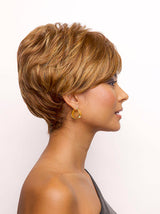 Gia by Rene of Paris is a razored textured short synthetic wig design. Featuring in a lightweight basic cap construction, with wefted sides and back allowing comfort and maximum scalp cooling. Made with a permatease top which is a teasing, short haired, crimping effect on the roots to create more lift and volume.