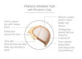 • fitting: adjustable velcro tabs- allows you to loosen or tighten the cap up to a half inch.