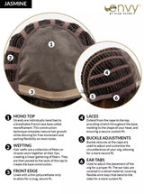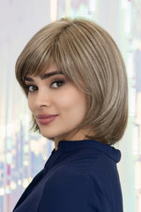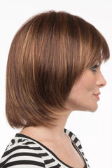 Dare to change up your look with Jasmine by Envy. This gorgeous mid-length synthetic wig boasts a full hand-tied monofilament top, perfect for experimenting with different parts and looks. Whether you keep the shorter bang as is or have your stylist trim it, the perfectly cut layers will beautifully frame your face and jawline. And with the monofilament top, you'll have a natural-looking part and volume on top, plus the convenience of pre-styled, weather-resistant straight synthetic hair. Achieve a flawless, instant bob every time!