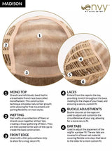 Colours may appear marginally different then shown in displayed image depending on the hair fibre or style. Each colour in the images shown can change from one screen to another. As well some hairpieces are made by hand, and each individual hair colour can slightly differ in shade. These colour swatches are intended to give you a good depiction of the shading, yet may fluctuate slightly from one piece to another.• design: wig
