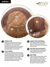 Experience the ultimate in style and comfort with Sophia by Envy, a mid-length blunt cut human hair wig. Versatile and customizable, it can be worn with layers, bangs, or as-is for a simple yet chic look. The 100% hand-tied cap, complete with a monofilament top and lace front, ensures a natural hairline and effortless movement. Made from high-quality human hair, Sophia can be styled with heat tools just like your own hair. Choose from a variety of vibrant colors for a multi-dimensional look. With its built-in poly tabs and strips, this cap provides a secure and comfortable fit. Trust Sophia to elevate your hair game and boost your confidence.
