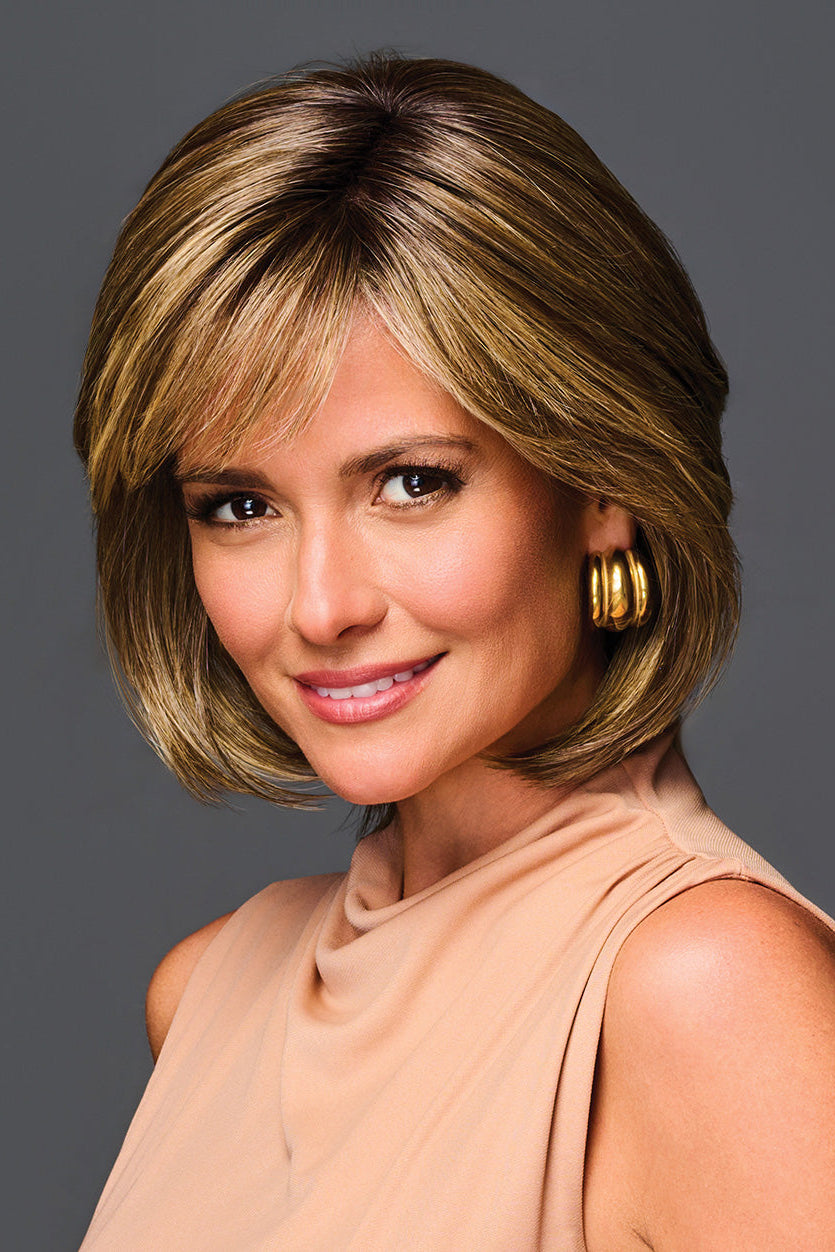Fall in love with All the Rage by Gabor! This chic short layered bob from the Designer Series Collection frames your face perfectly. The heat-friendly synthetic fibers and hand-tied personal fit cap ensure all-day comfort. The wispy, side-swept bangs add a touch of elegance to this eye-catching chin-length style.