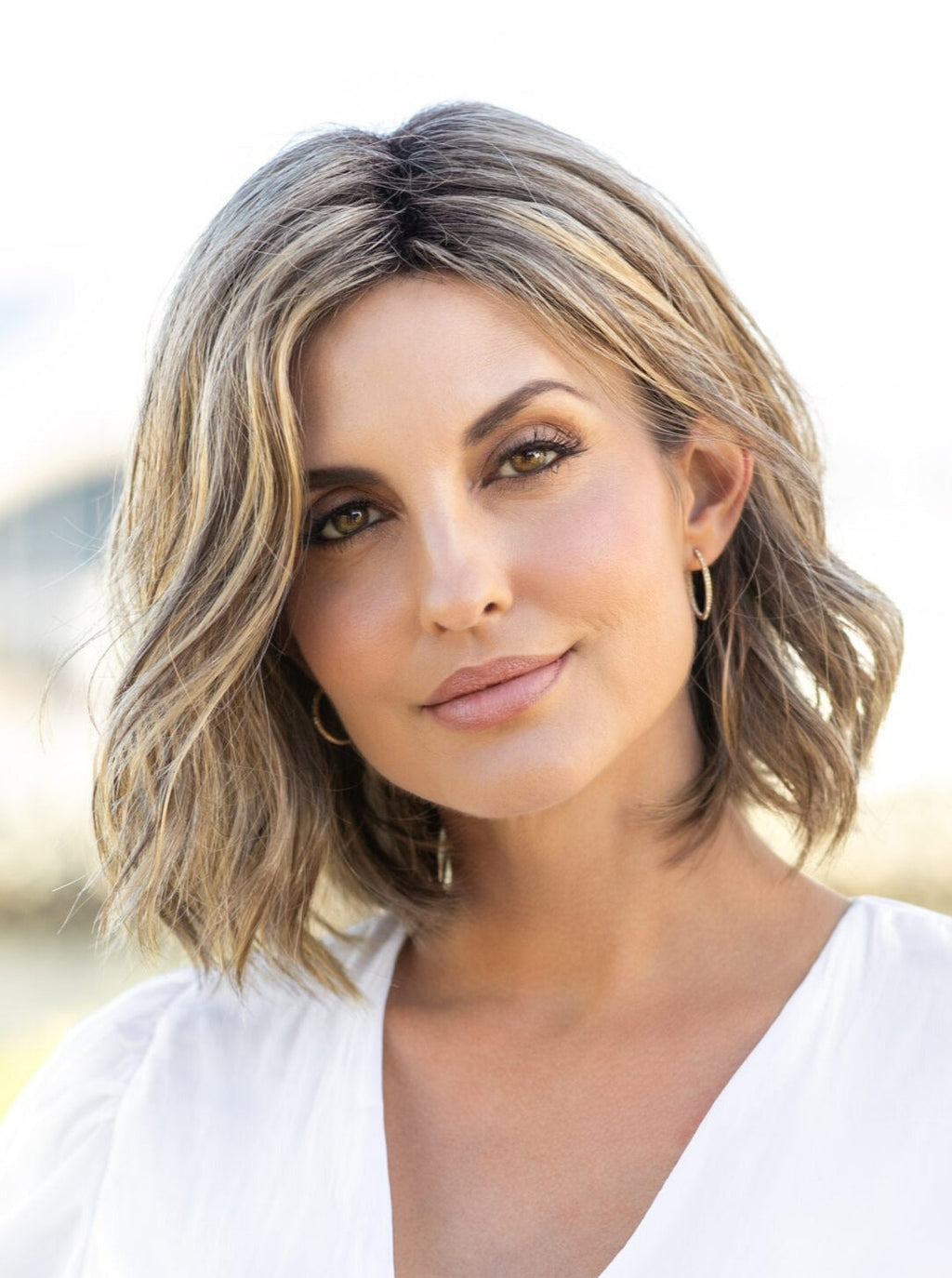 Charlotte by Envy features a chic, wavy layered bob that falls just below the chin for a stylish mid-length look. Crafted with synthetic fibers, this wig includes a monofilament part that mimics natural hair growth and a lace front for a seamless, realistic hairline.