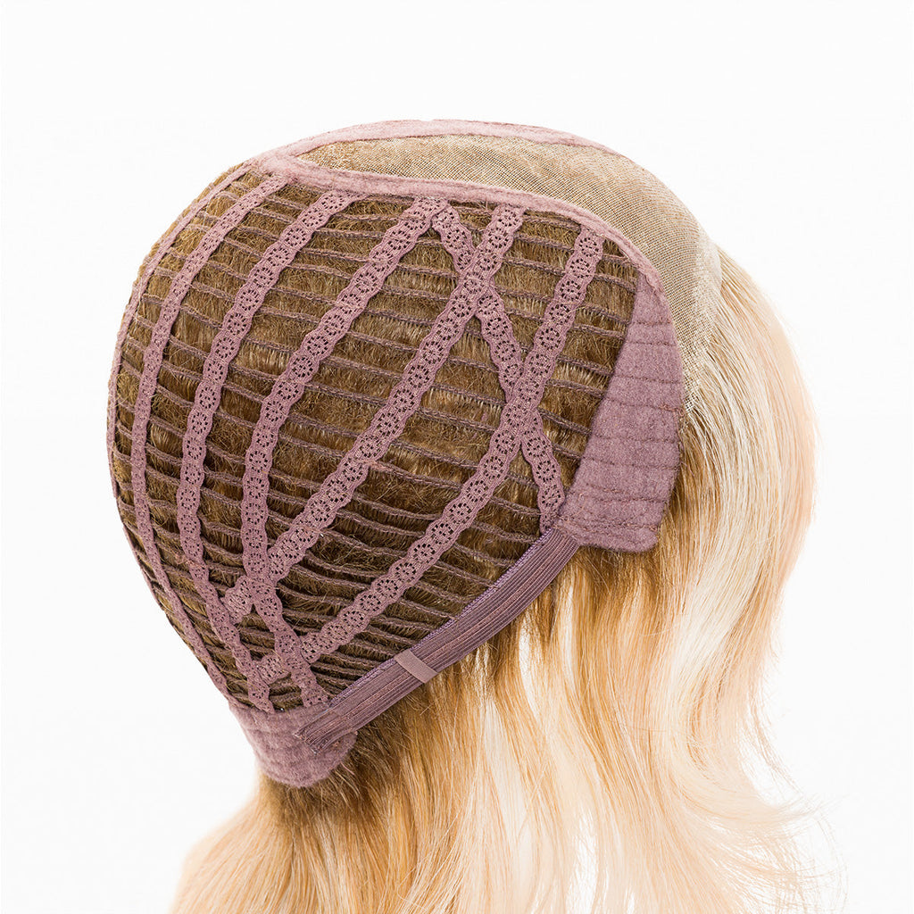 This type of cap features a wonderfully natural crown or “crest” area, where each and every hair has been individually weaved. This area varies on all models, depending on the style, it is usually either pointed or elongated. The wig looks particularly natural in areas where the skin is visible, as the weave of wig hair appears to flow directly from your own scalp, just like natural hair growth. The rest of this wig mostly consists of a wefted cap in which the hair is sewn into fine cotton tapes. Wefted caps adapt very well to the shape of the head and allow air to circulate.