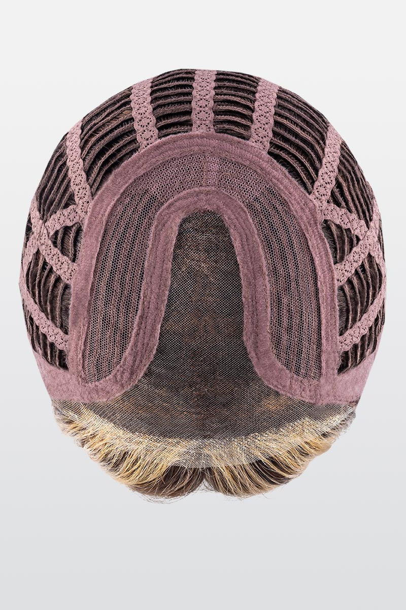 • This type of cap features a wonderfully natural crown or “crest” area, where each and every hair has been individually weaved. This area varies on all models, depending on the style, it is usually either pointed or elongated. The wig looks particularly natural in areas where the skin is visible, as the weave of wig hair appears to flow directly from your own scalp, just like natural hair growth. The rest of this wig mostly consists of a wefted cap in which the hair is sewn into fine cotton tapes. Wefted caps adapt very well to the shape of the head and allow air to circulate.