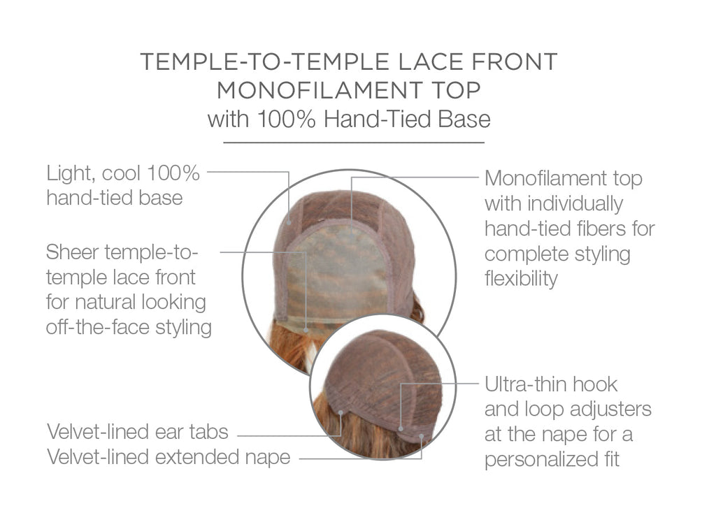 • monofilament top - creates the illusions of natural hair growth and allows you to part the hair in any direction.