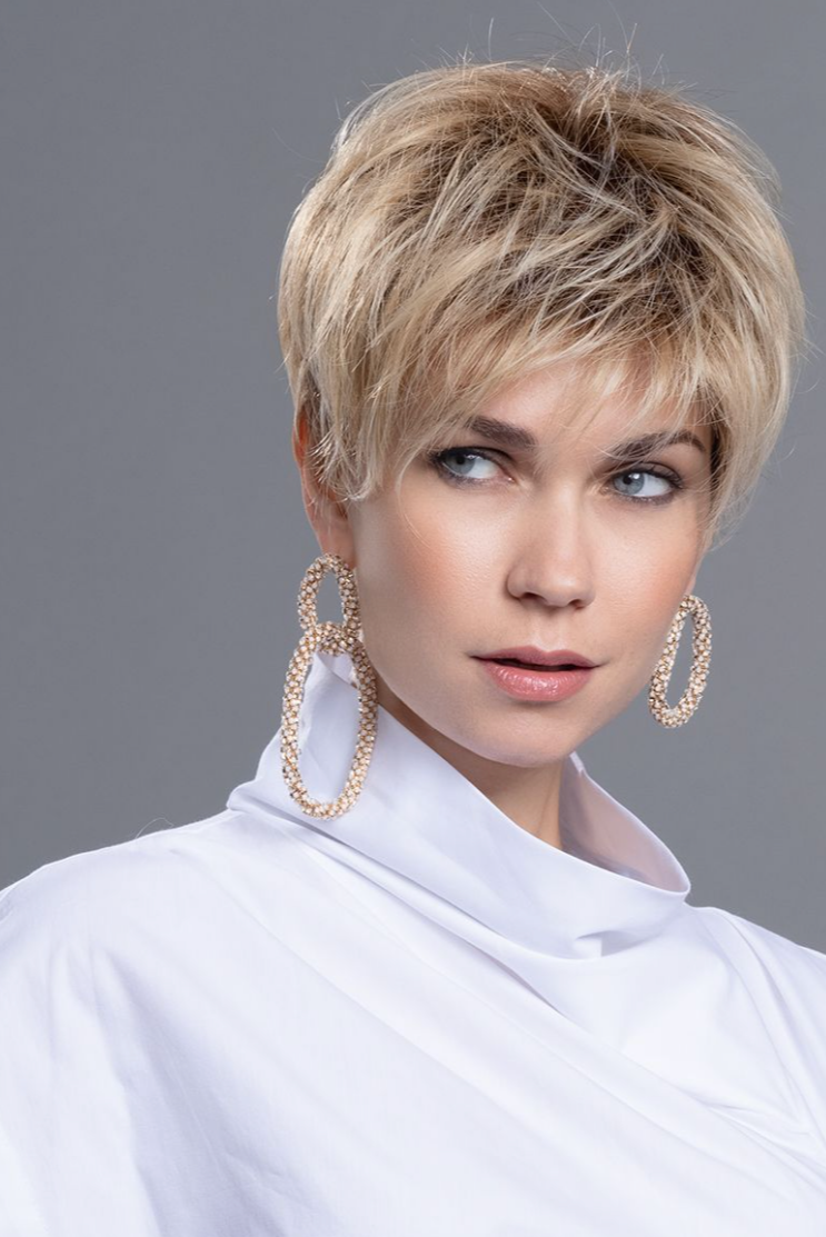 Elan by Ellen Wille Changes collection is a pixie design cut in a heat synthetic fibre. Made with a mini lace front with a wefted back design