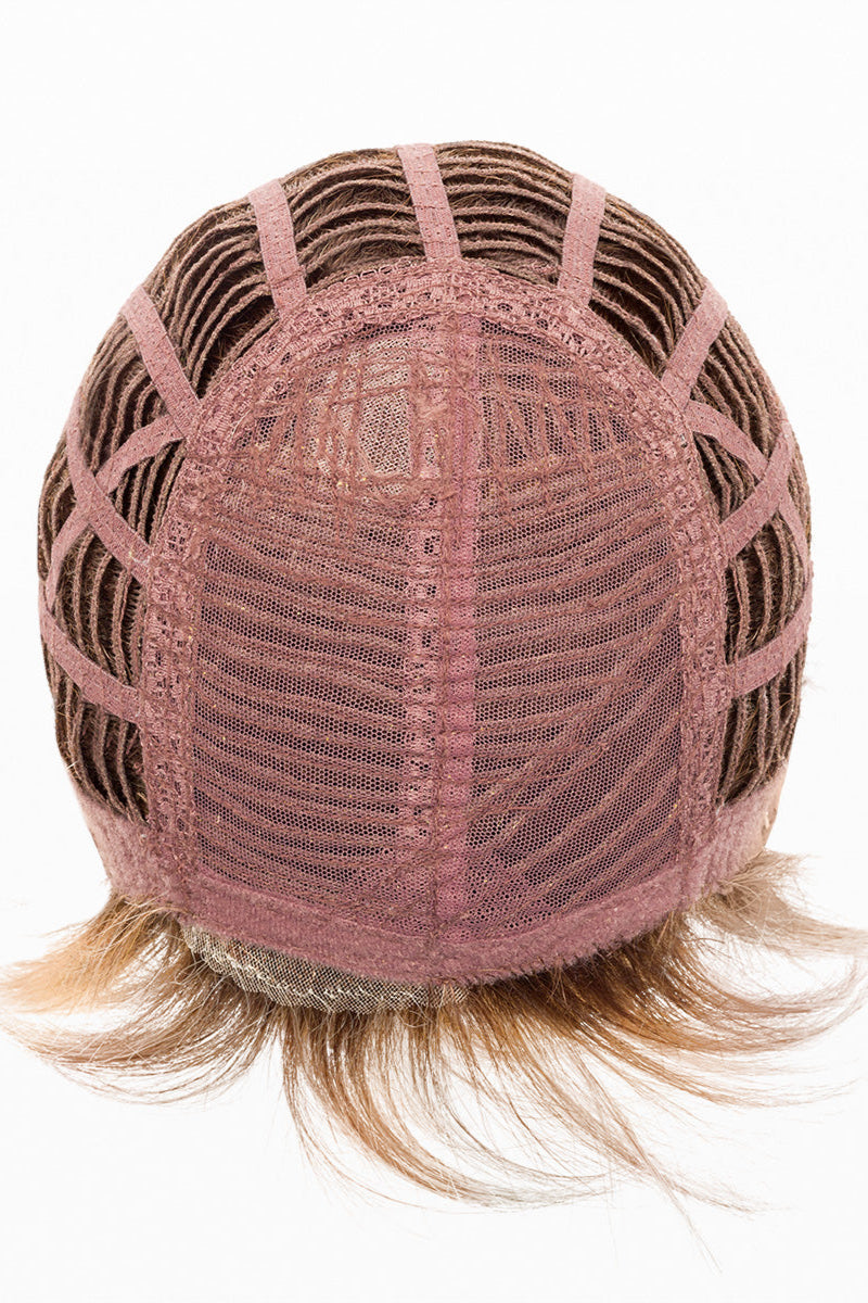 This type of cap features a wonderfully natural crown or “crest” area, where each and every hair has been individually weaved. This area varies on all models, depending on the style, it is usually either pointed or elongated. The wig looks particularly natural in areas where the skin is visible, as the weave of wig hair appears to flow directly from your own scalp, just like natural hair growth. The rest of this wig mostly consists of a wefted cap in which the hair is sewn into fine cotton tapes. Wefted caps adapt very well to the shape of the head and allow air to circulate.