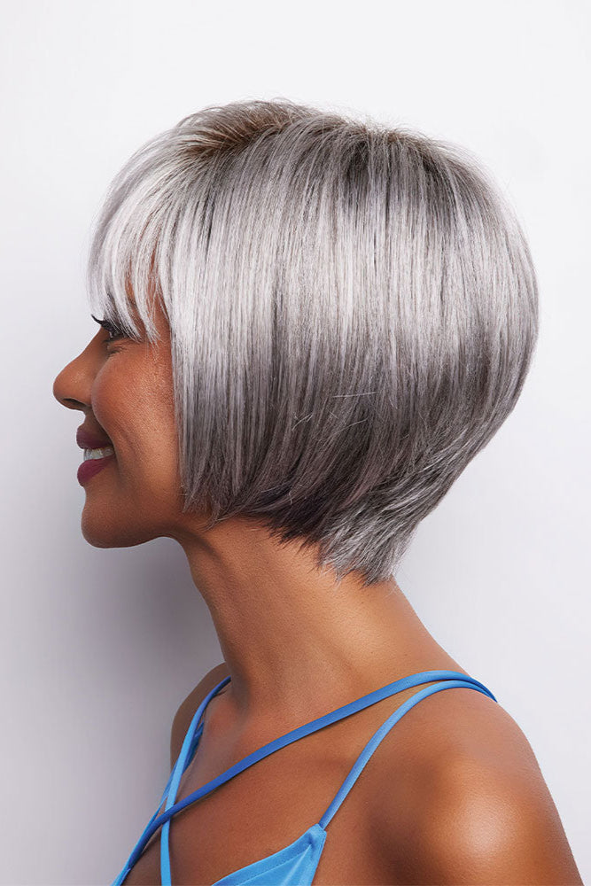 Meadow by Noriko is a chin length bob with fringe. Meadow is created in a basic lightweight cap construction with wefted sides and back allowing for a cool and comfortable fit.