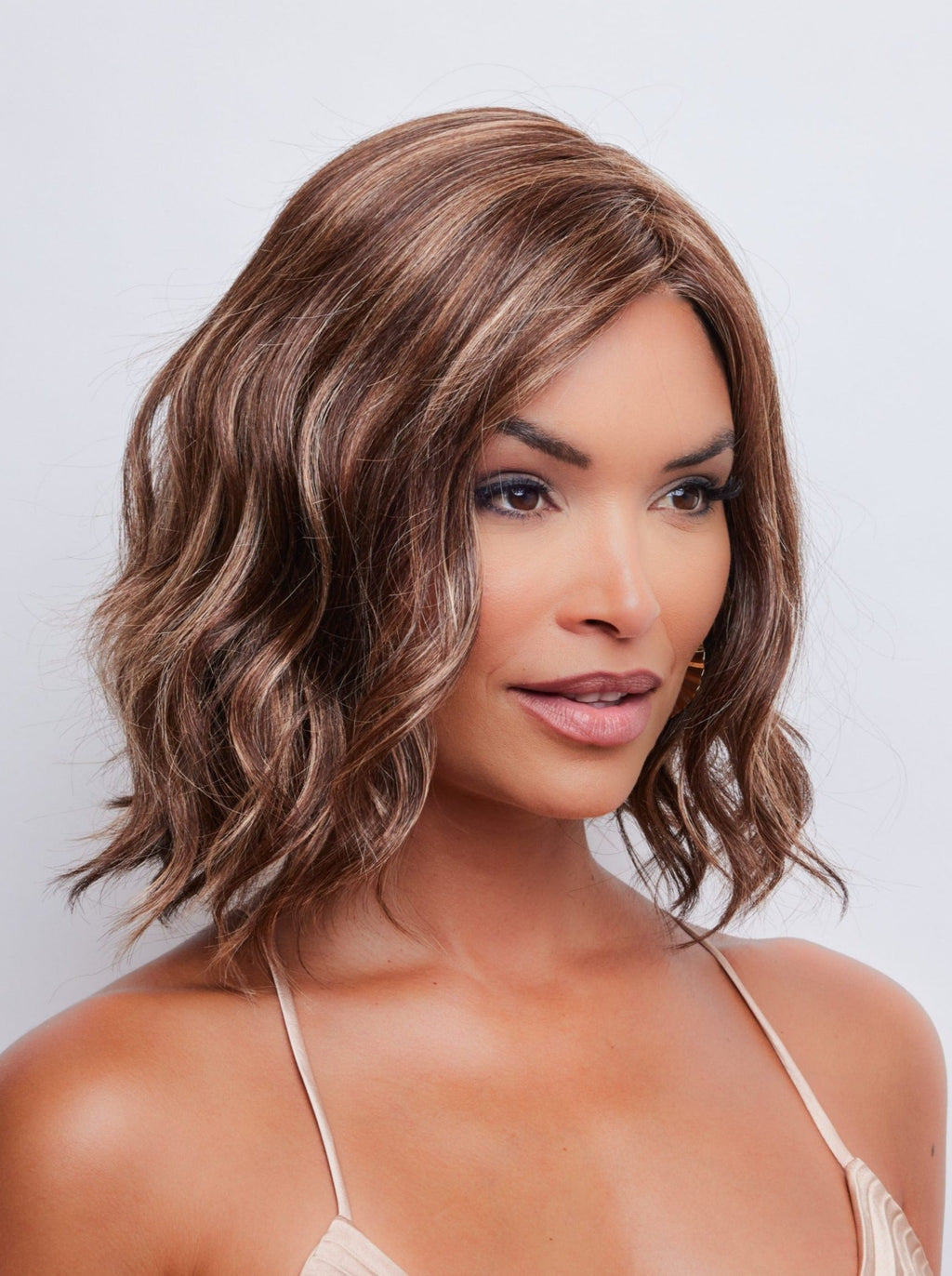 Discover the show-stopping neck-length beach wave wig, Merrill, from the Noriko Collection. Made with Noriko's newest Natural Movement fiber blend, this stunning wig offers the perfect ready-to-wear look and feel, without the excess shine. With a lace front and lace part, achieve a natural-looking hairline and adjust the tabs in the nape for a comfortable and snug fit all day.